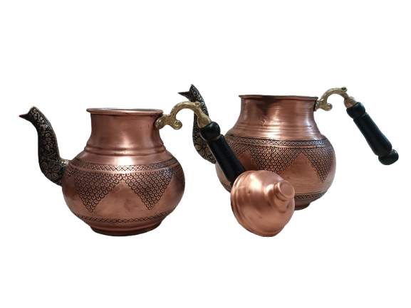 Bakır çaydanlık takımı ağır işlemeli modeldir